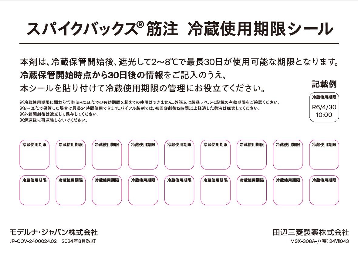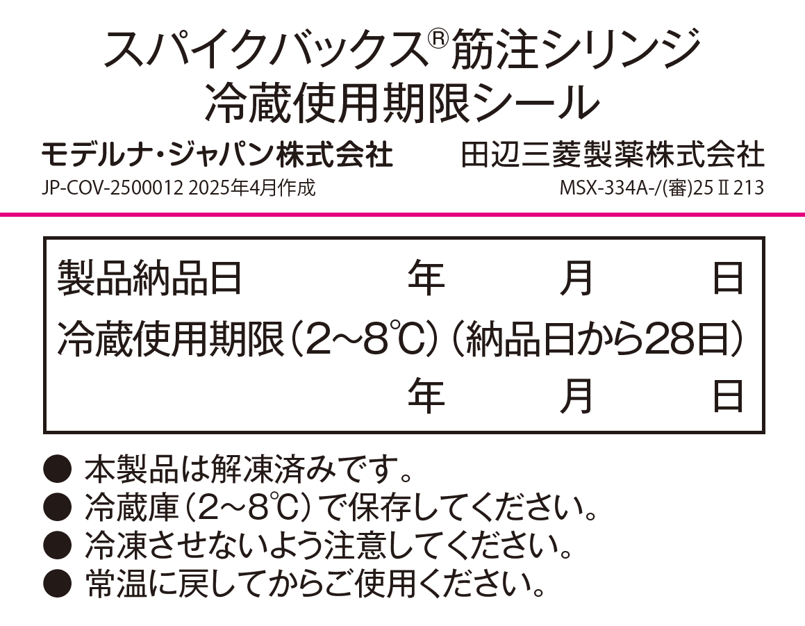 スパイクバックス筋注シリンジ 冷蔵使用期限シール