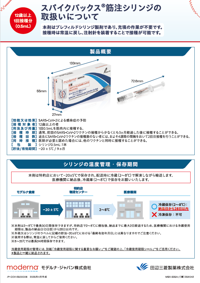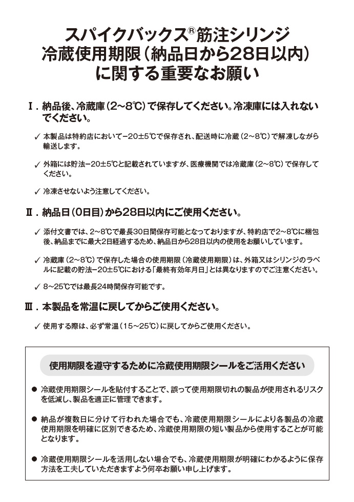 スパイクバックス筋注シリンジ 冷蔵使用期限に関する重要なお願い