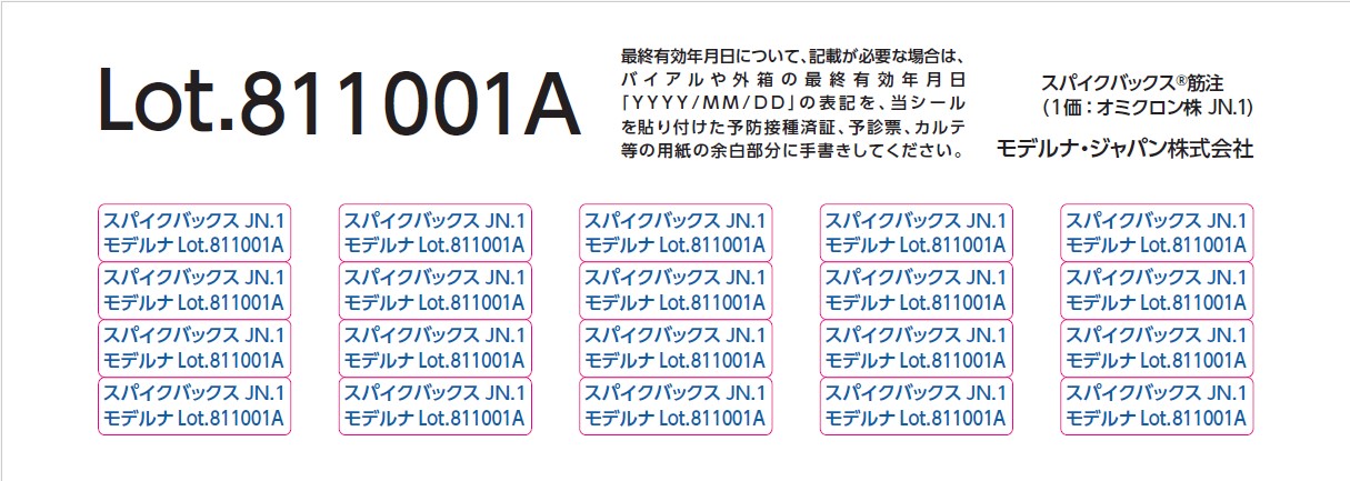 MDVロットシール_811001A(1価:オミクロン株 JN.1)