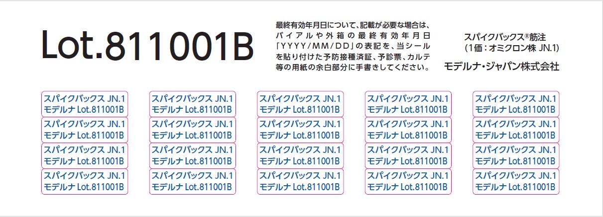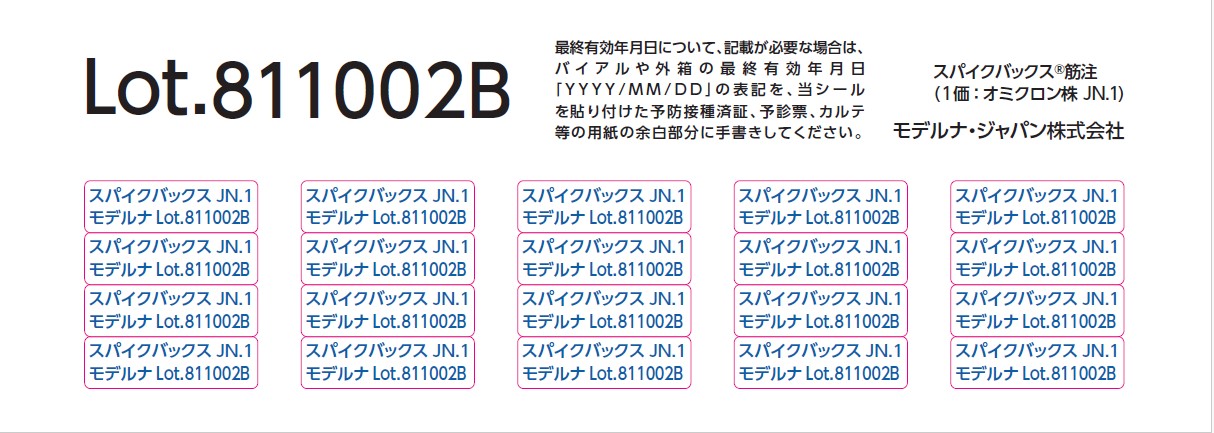 MDVロットシール_811001B(1価:オミクロン株 JN.1)