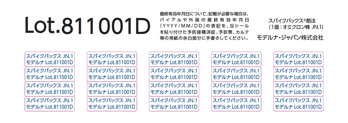 MDVロットシール_811001D(1価:オミクロン株 JN.1)
