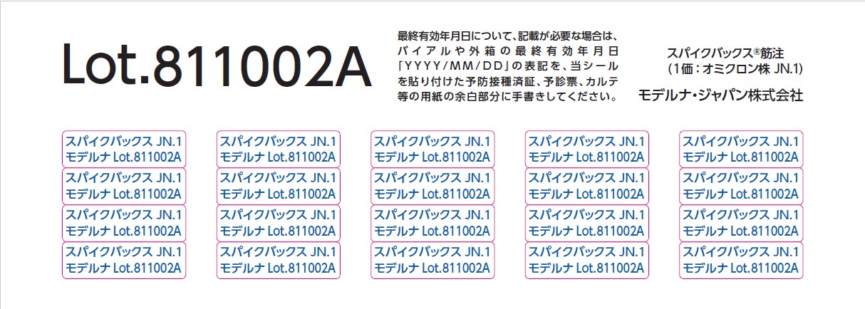 MDVロットシール_811002A(1価:オミクロン株 JN.1)
