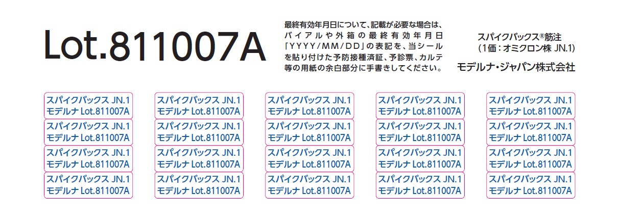 MDVロットシール_811007A(1価:オミクロン株 JN.1)