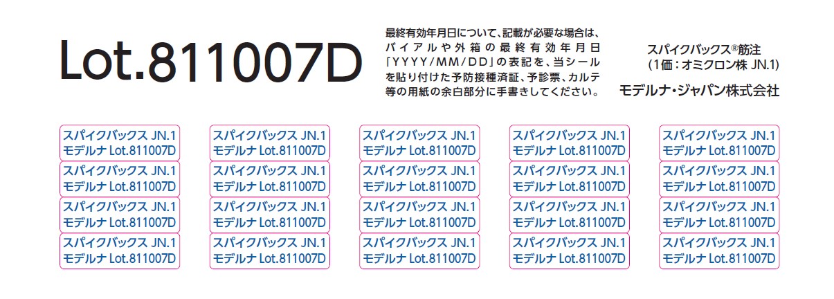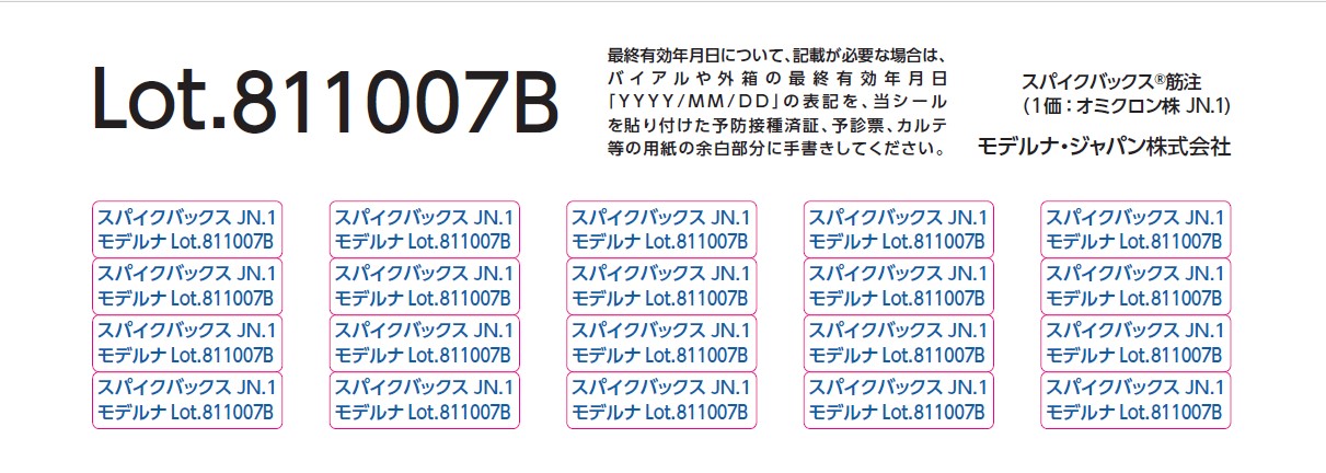 MDVロットシール_811007B(1価:オミクロン株 JN.1)