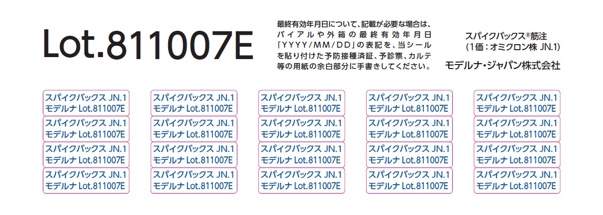MDVロットシール_811001E(1価:オミクロン株 JN.1)