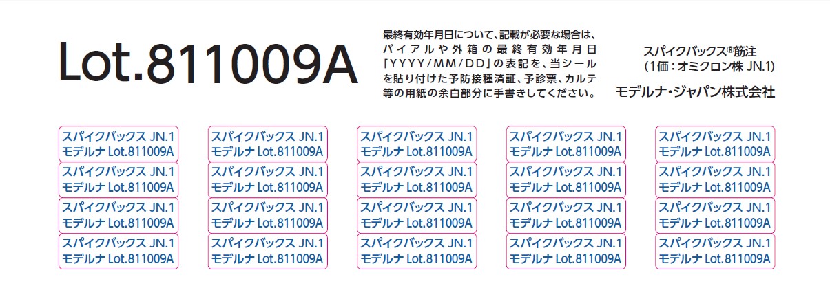 MDVロットシール_811009A(1価:オミクロン株 JN.1)