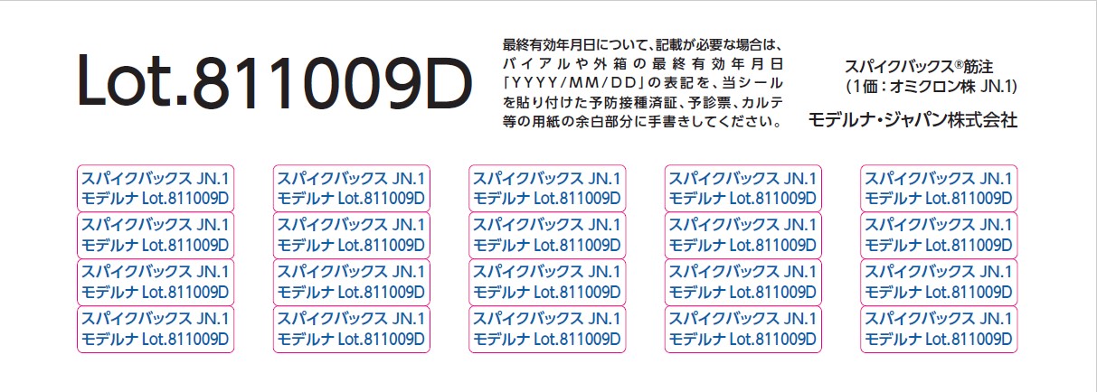MDVロットシール_811009D(1価:オミクロン株 JN.1)